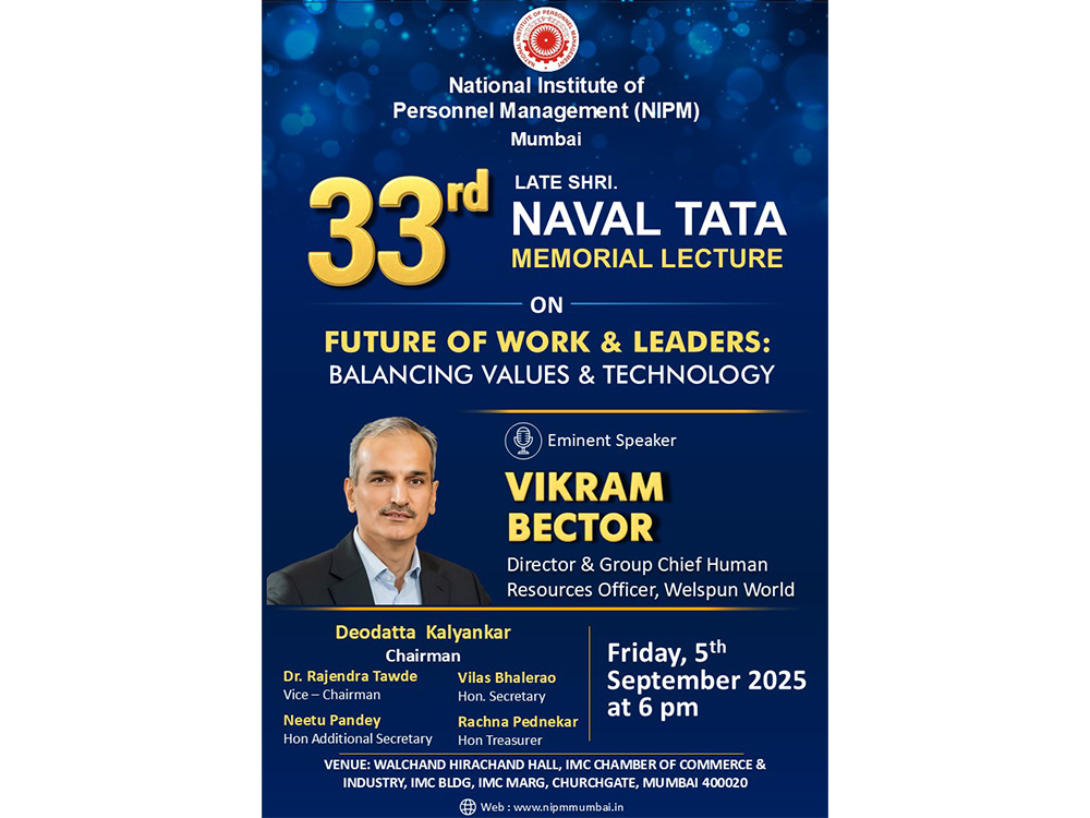 National Institute of Personnel Management Mumbai Chapter organised the 31st LATE SHRI NAVAL TATA MEMORIAL LECTURE on 31th August 2023 at 6.00 pm on the topic of "India's ESG Revolution : Role of HR".